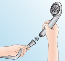 10. Screw the shower hose to the shower arm, and then the handheld shower to the hose. Many kits call for hand-tightening.